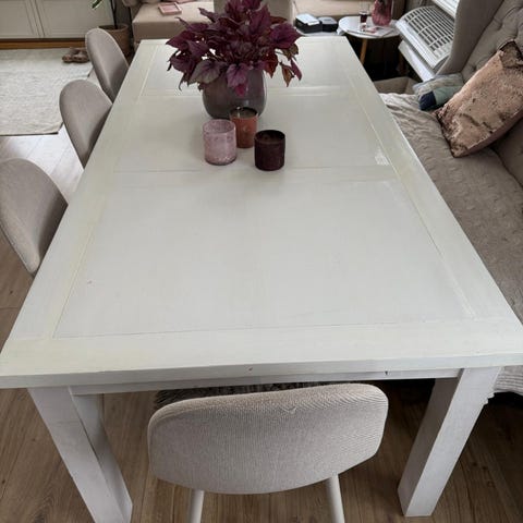 Pent brukt salongbord fra skeidar i Eike finer.