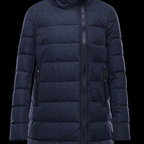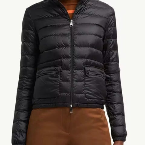 Moncler dunjakke for dame i størrelse S. Jakken er svart og har vattert front og rygg med dunfyll, samt glidelås i front. Ermene er i et mykere stoff som gir god bevegelighet. Klassisk Moncler-logo på ermet. Passer som lett ytterjakke eller mellomlagsjakke i kjøligere vær.