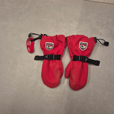2par Hestra votter med ullfor. Ene er str.2år og andre 3år, men de er god på størrelse. Det mørke paret har uttakbar ullfor-votter inni. I det blå paret er ullforet fast i vottene.