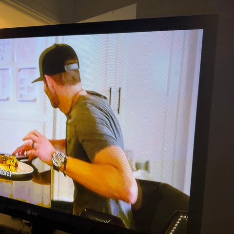 En kjempefin Tv både når det gjeldet design og billedkvalitet. TV er montert på fot, men veggfeste følger også med om ønskelig.
