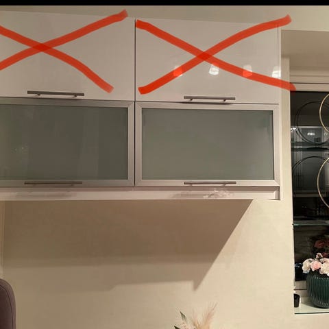 Noen merker i toppen, altså siden som er vendt opp mot taket. Ikke synlig med mindre du tar ned skapet.