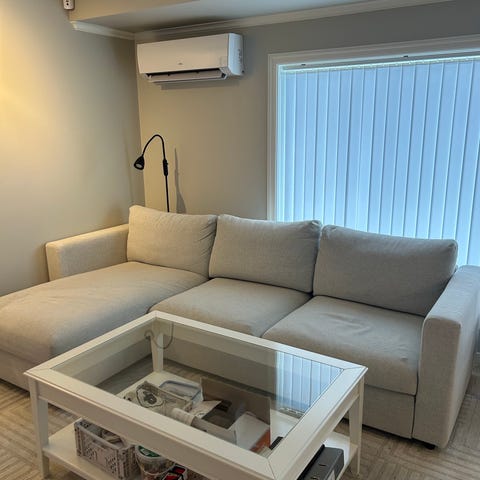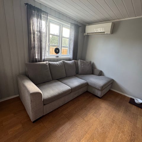 Kjøpte denne sofaen ny på IKEA høsten 2022. Mener fargen het Gunnared Beige. Selges da vi har fått ny sofa. Har dessverre hatt katter som liker å klore på endene. Selges derfor billig. Vet det er mulig å kjøpe nytt stoff på IKEA. Trenger en vask, men mulig å vaske alt av trekk☺️
