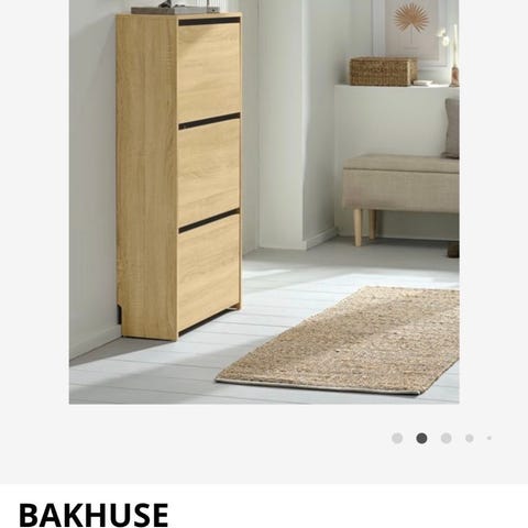 Skohylla er en åpen hylle med to nivåer og lameller, egnet for oppbevaring av sko eller støvler. Den er også i hvit utførelse og kan plasseres i gang, bod eller garderobeområde.
