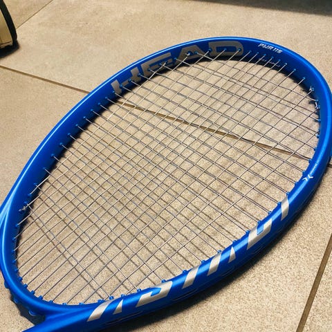 Head Instinct tennisracket i blå farge med hvitt grep.