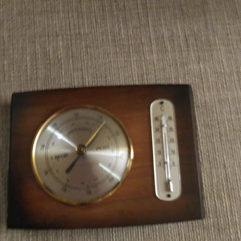 Barometer / Gradestokk m/ teak front. For vegg eller hylle. Kr.150.-