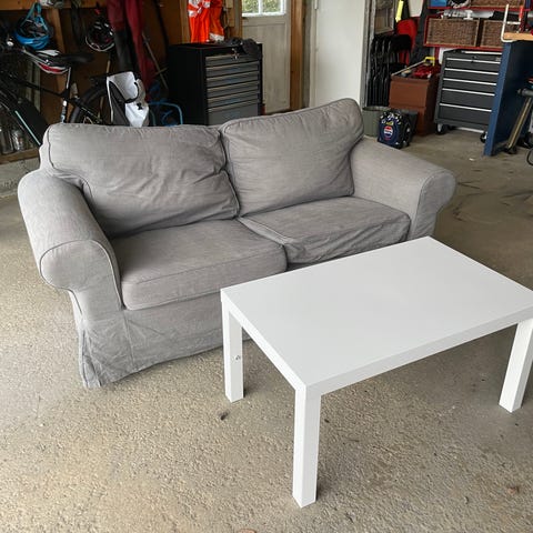 Stor hjørnesofa og sofabord (kiste) gis bort mot henting