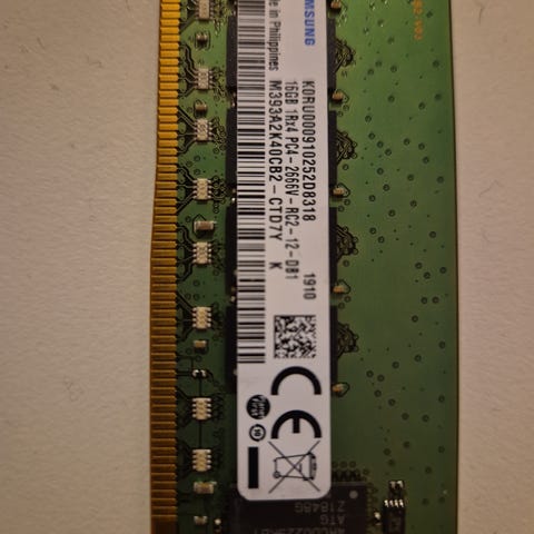 Selger 2 stk. 16GB Samsung brikker (totalt 32GB) av typen DDR4 ECC Unbuffered (UDIMM).