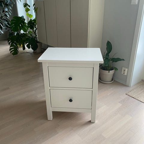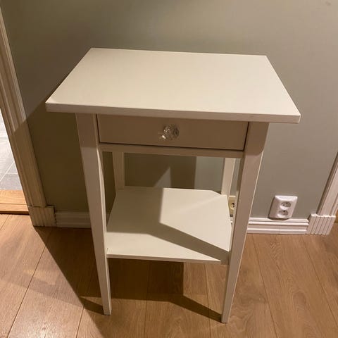 To solide heltre nattbord fra Ikea selges samlet. Den gode høyden gjør at de også passer til en høyere seng. De i originale knottene er skiftet ut med lekre designknotter i metall. Nattbordene er i svært god forfatning (se bilder).