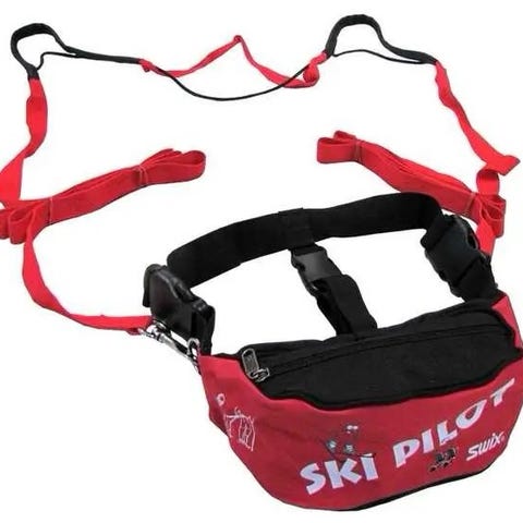 Swix Ski Pilot barnesele i rød farge. Selen består av hoftebelte og stropper med festepunkter som gjør det mulig for en voksen å støtte og styre et barn på ski. Produktet er egnet til bruk ved skitrening og tilvenning for barn som lærer å stå på ski.