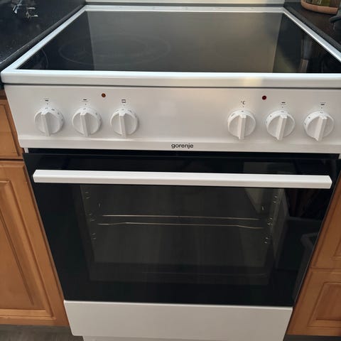 Gorenje keramisk komfyr i hvit utførelse. Komfyren har keramisk topp med flere kokesoner og stekeovn med frontåpning. Betjenes med dreieknapper plassert foran. Passer til vanlig frittstående plassering på kjøkken.