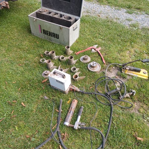 Det følger med mange kuttere til flis, skifer osv som heller aldri er brukt.