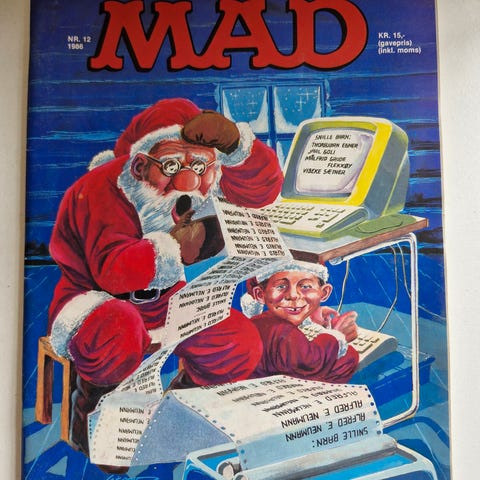 MAD tegneserieblad i norsk utgave. Humorblad med fargerike forsider og satiriske tegneserier. Egner seg for samlere av norske tegneseriehefter og for lesere som er interessert i humor og satire i bladformat. Kr 20 pr stk