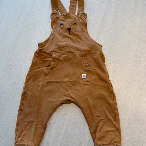 Name it selebukse for baby/unisex i størrelse 80. Buksen er i myk bomull med rutete flerfarget mønster. Den har seler med knapper foran og bak, samt trykknapper langs innsiden av bena for enklere av- og påkledning og bleieskift. Passer til hverdagsbruk og kan kombineres med body eller genser under. Noe slitt med nupper og har noen løse tråder. Fra røyk- og dyrefritt hjem.