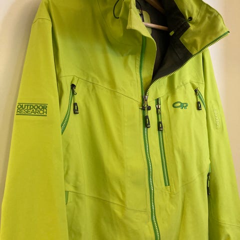 Arc’teryx jakke for herre i størrelse L. Jakken er rød med hette og hel glidelås i front. Den har sidelommer med glidelås og justeringsmuligheter ved ermene. Innsiden er mørk, og materialet fremstår som en lett skalljakke egnet som ytterlag. Passer til ulike utendørsaktiviteter og hverdagsbruk.