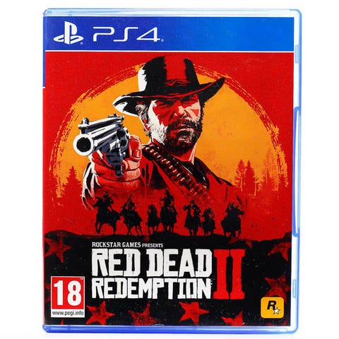 Rockstar Games Red Dead Redemption II Playstation 4 spill. Fysisk utgave på Blu-ray-disc i standard PS4-cover. Spillet er et actioneventyr satt til USA på slutten av 1800-tallet, med åpen verden og fokus på historie, utforskning og oppdrag. Aldersgrense 18 år ifølge PEGI-merking på omslaget. Leveres med to plater og trykt omslagstekst på engelsk.