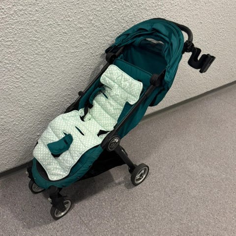 Vognen er enkel og god å trille. Tar liten plass når den er lagt sammen.