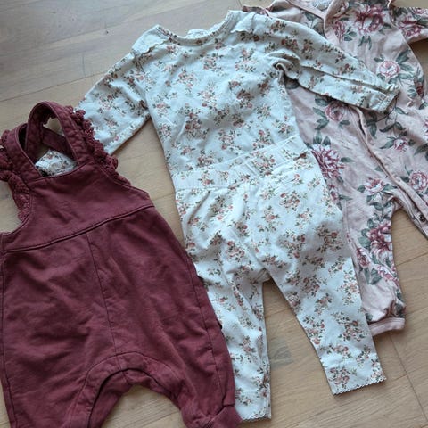 Newbie klespakke i str 50/56. Selges 600kr en body i 50 resten er i 56. Alt er pent brukt