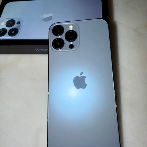 Apple iPhone 13 Pro Max mobiltelefon med 128 GB lagringsplass.. batteri kapasiteter er 83%. pent brukt med deksel og skjermbeskytter . Det følger med 2 deksel, det ene er ny i eske. Bildene er med skjermbeskytter . Selges da fruen har fått nyere iPhone