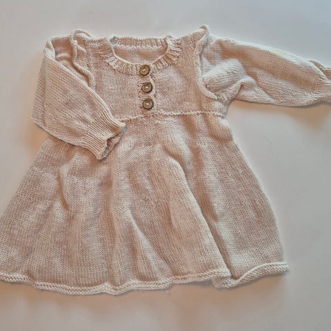 Nydelig Hjertekjole i 100 % Extra fine merinoull fra Lillelam, størrelse 62. Denne har dessverre fått to guloransje flekker foran, en på brystet og en på skjørtet. Jeg har ikke prøvd å vaske disse bort med sitronsåpe, men det er godt mulig at dette vil ta bort flekkene. Ellers er den som ny. Selges billig pga flekkene.