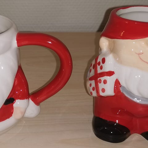 Selger 2 stk julekopper og serveringsfat med nisser samlet. Ingen skader eller skrammer.