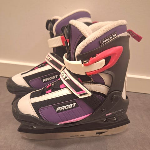 Meget pent brukte skøyter. Enkle for barnet å ta på selv da det ikke kreves knyting.