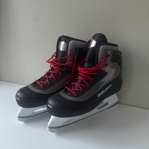 Bauer Expedition ishockeyskøyter i størrelse 38,5 men litt stor i størrelsen. De har fått litt riper på utsiden men det er kun skjønnsmessige skader for skøytene er nesten ikke brukt.