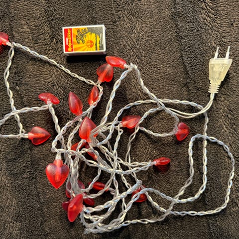 Selger en lyslenke med strømuttak. Ingen skader eller skrammer. Har blitt brukt utendørs under tak.