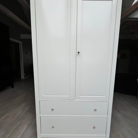 Selger en pent brukt robust åpent garderobe fra Hemnes. I hvit farge med mulighet for oppbevaring under. Meget bra kvalitet og laget i massivt tre. Lite med bruksmerker og er i fin stand.