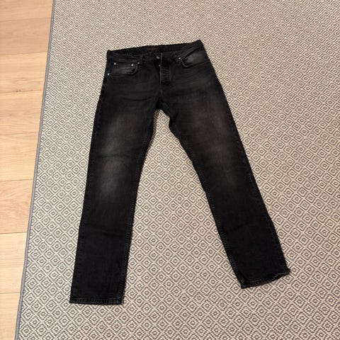 Nudie Jeans jeans for herre i blå denim. Modell: Grim Tim Dark Dreams. Buksen har livvidde W33 og benlengde L32, som vist på lappen. Klassisk femlommersmodell med glidelås/gylf og kontrastsømmer. Materiale i denim (bomull). Passer til hverdagsbruk og kan kombineres med ulike overdeler for en enkel og nøytral stil.