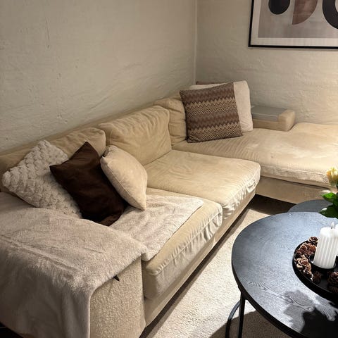 Vi har en eldre Ikea hjørnesofa som vi har demontert og gjort om til en 3 seter. Vi har fortsatt hjørnedelen og den 2-seter delen så det går ann å få den tilbake til original stand. Stoffet på sitte puttene er litt slitt enkelte steder. Vi flytter snart og har ikke plass. Hvis dette er av interesse må man griper sjansen nå!! Vi tenker "gies bort" mot avhenting.