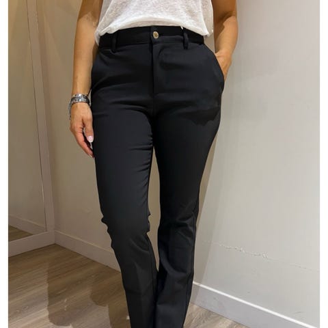 Ny Pieszak bukse for dame i svart bomull. Buksen livvidde W31 og lengde 30. Klassisk 5-lommersmodell med beltehemper, knapp og glidelåslukking. Passer til hverdagsbruk og kan kombineres med ulike topper og gensere.