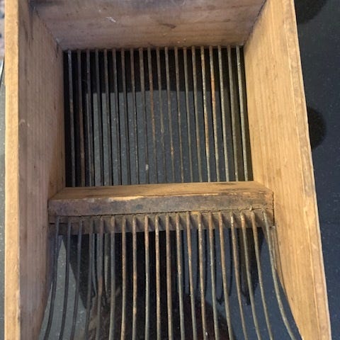 Eldre blå bærplukker i metall. Hel og pen og stilig. Kan brukes som pynt.