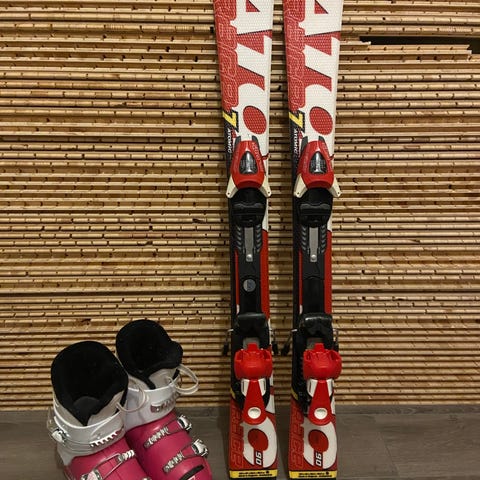 Passer til alpint i bakke. Lengde: 161cm, sko: 26,5. Hjelm følger også med.