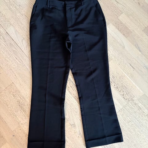 Gina Tricot bukse for dame i størrelse 44. Buksen er svart og modellen har rette ben og klassisk uttrykk, egnet til både hverdagsbruk og enklere penere anledninger. Kan kombineres med ulike topper, skjorter eller gensere etter behov.