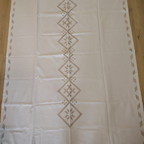 Hardangersøm, hvit løper 17 x 49 cm, klar til bruk, kr. 150,-