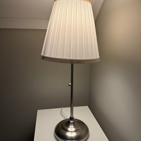 IKEA bordlampe med hvit skjerm metall