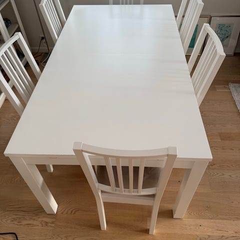 stort spisebord i eik,malt hvit(100×200)