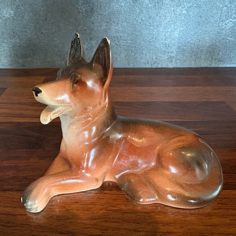 Fin og hel Porselen hund på ca 35 år selges da den ikke står fremme til pynt lengre og håper på nye eiere som verdsetter den