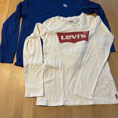 Levi's 501 t-skjorte for barn i størrelse 140. Hvit t-skjorte i bomull med 501-print på brystet. Unisex-modell som passer både gutter og jenter. Kortermet med rund hals og klassisk passform i mykt bomullsmateriale. 2 stk, lappen har falt av på den ene men begge er nye. Selges pga at minstemann vokste for fort og disse ble ikke brukt.