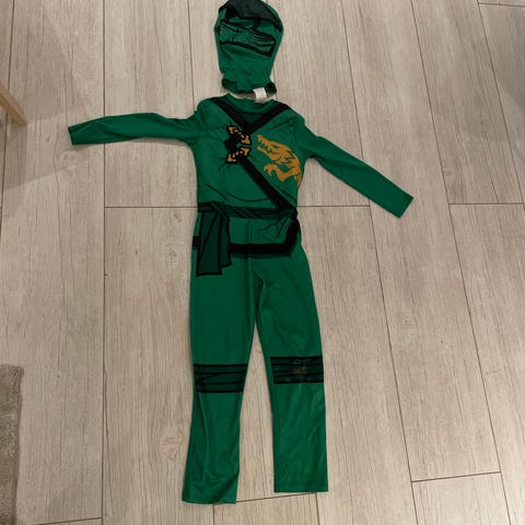 Pent brukt Lego Ninjago Lloyd karnevalsdrakt. Ingen skader på drakten, men masken ble ødelagt (følger ikke med). Passer til ca 4-6 års alder.