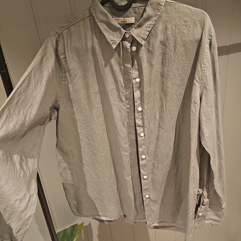 H&M skjorte for dame i størrelse M. Skjorten er beige og laget av bomull og lin. Den har lange ermer, klassisk krage og knepping foran. Passer til hverdagsbruk eller som en enkel, nøytral skjorte til jobb og fritid.