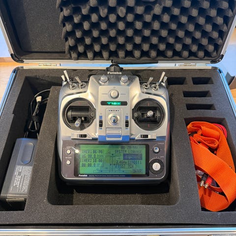 Dette er er pent brukt Spektrum DX8, med plast beskytter fremdeles på skjermen. En radio i verdensklasse som kan brukes til fly, helikopter og enkle seilfly. Radioen er god å holde i og man har god plass til en finger imellom bryterne på toppen ( viktig spesielt for helifolket ). Skjermen er stor og menyene er lett å navigere i. Stikkene er gode å holde i og man kan lett justere motstanden gjennom to luker bak på radioen. Det er digitale trimmer på alle ror og radioen er generelt god å holde i og å bruke.