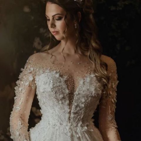 Nydelig brudekjole brukt kun én gang (brukt maks 5 timer). Kjolen er kjøpt hos Cherie Brud i Ålesund og er opprinnelig fra Spania.