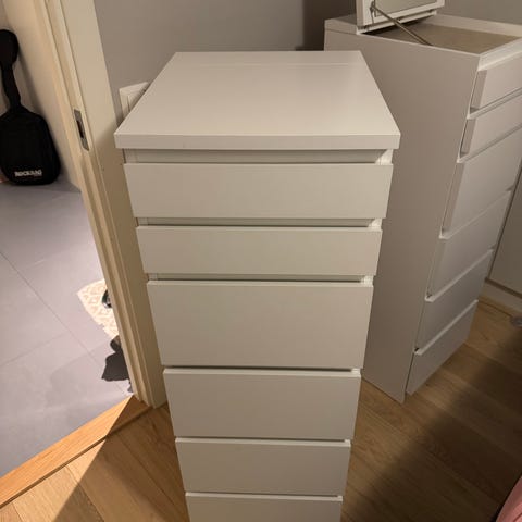 Pent brukt brunbeiset Malm kommode med 6 skuffer og rom til f.eks smykker m/speil, selges kr 400.