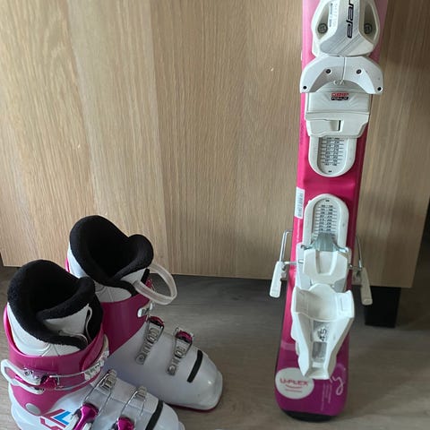 Elan Sky U-Flex alpinski og Lange Starlet alpinstøvler barn rosa