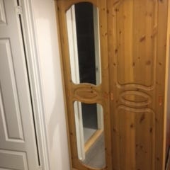 Brukt heltre furuskap gis bort 188 cm høyt 77cm bredt 33cm dypt.