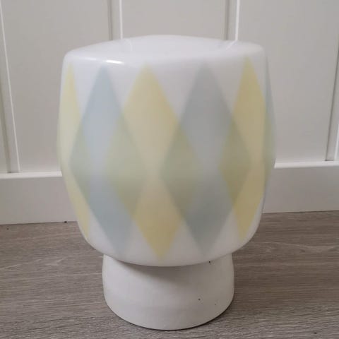 Unik retro vegglampe i porselen og opalglass med blå blomsterbord. Lampen er produsert i Sverige på 1950/60-tallet. Lampen er fullt fungerende og pære følger med.