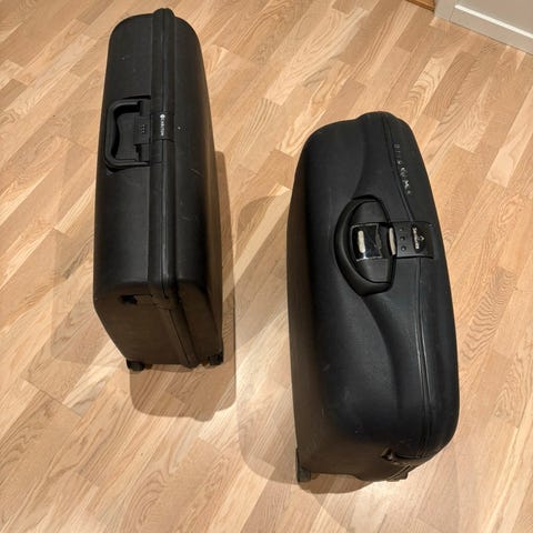 Tre pent brukte trillekofferter selges kr 100 pr stk