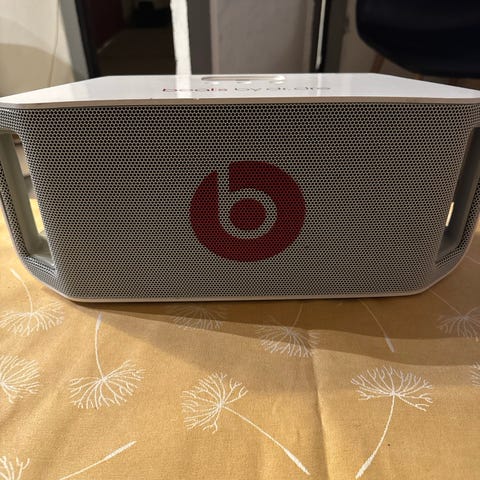 Beats bærbar Bluetooth-høyttaler i sølvfarge.