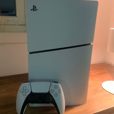 PlayStation 5 Slim Digital-konsoll, brukt kanskje to ganger. Konsollen er i perfekt stand uten tegn til slitasje. Kontrolleren er også i perfekt stand, som ny. Inkluderer strømkabel, HDMI-kabel og Type-C-kabel. Ingen originalemballasje.